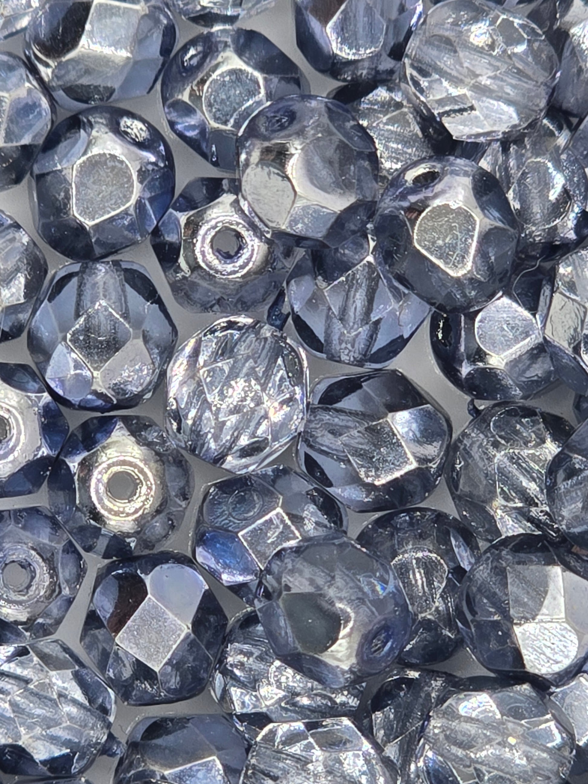 Czech fire-polished facet rounds are a type of high-quality glass bead made in the Czech Republic, known for their durability, brilliant sparkle, and consistent shape.