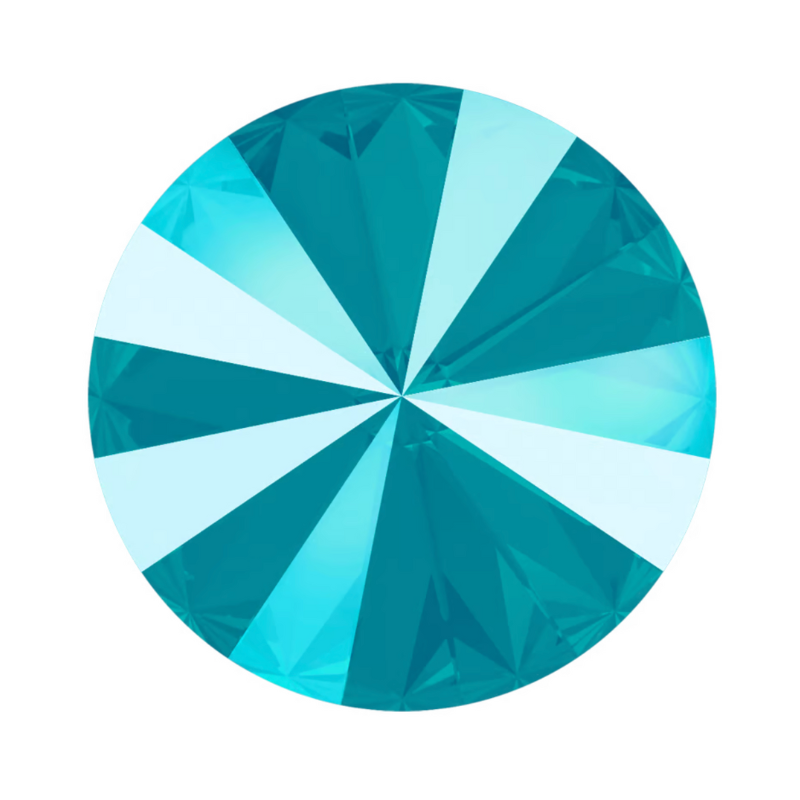 The 1122 Swarovski Rivoli stones are round stones that form a center point on both sides that feature a symmetrical multi-faceted pattern.