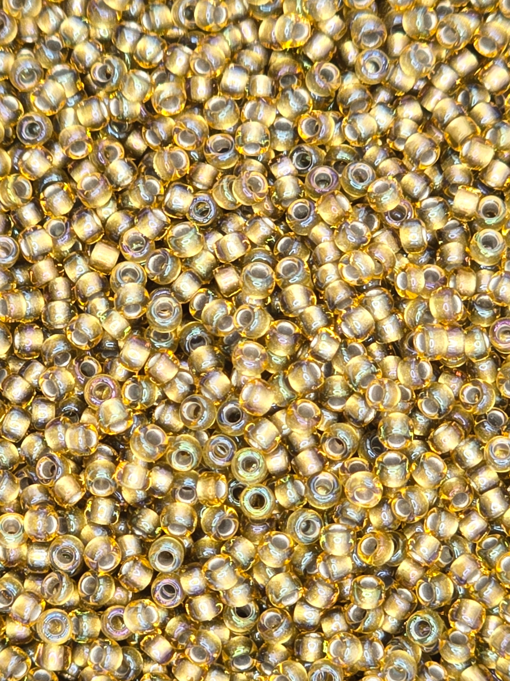 TOHO #15 Seeds - 375 - Inside Colour Rainbow Light Topaz/Grey Lined - 5 gms
