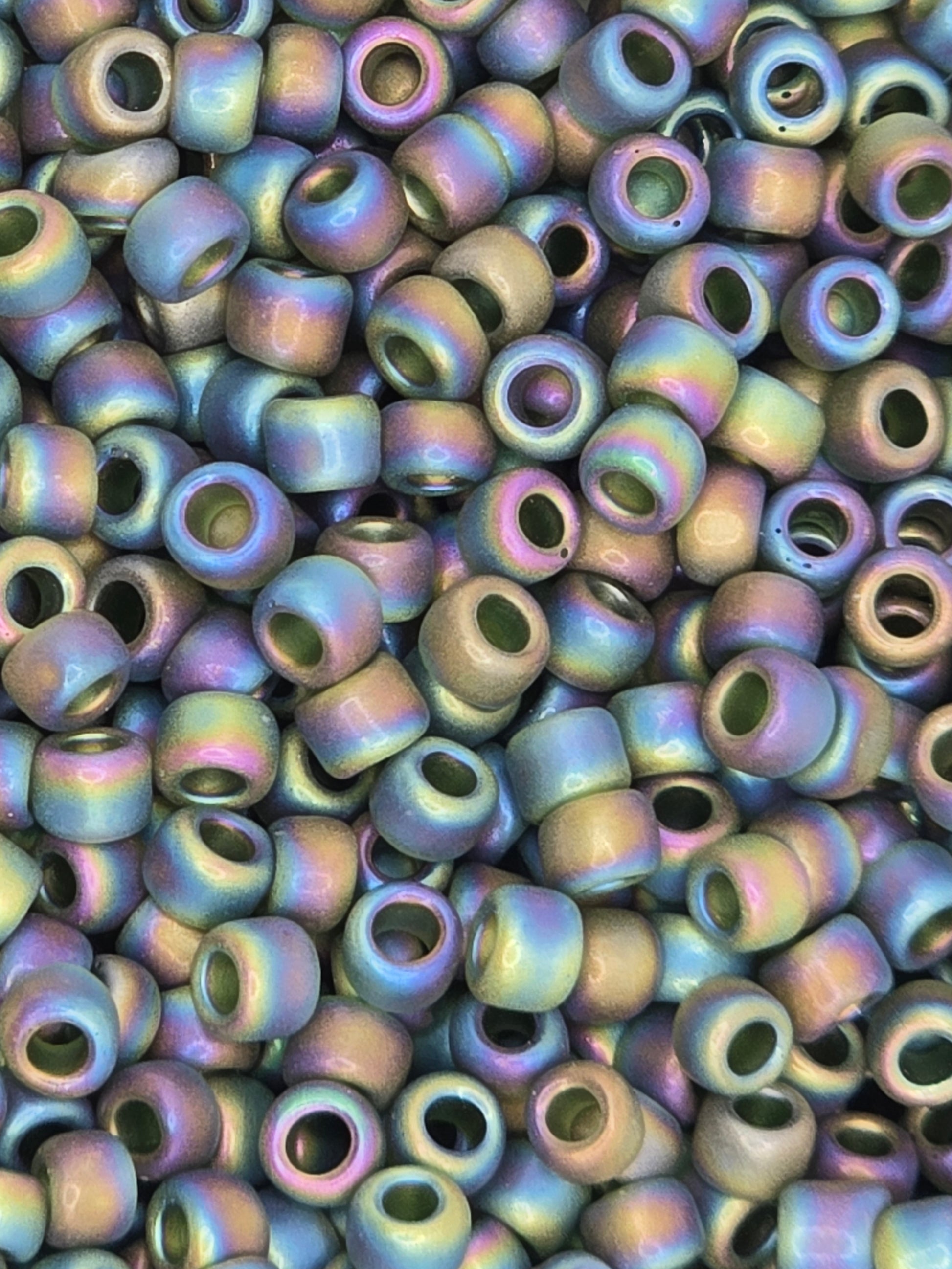 TOHO #8 Seeds - 180F - Transparent Rainbow Frosted Olivine - 10 gms
