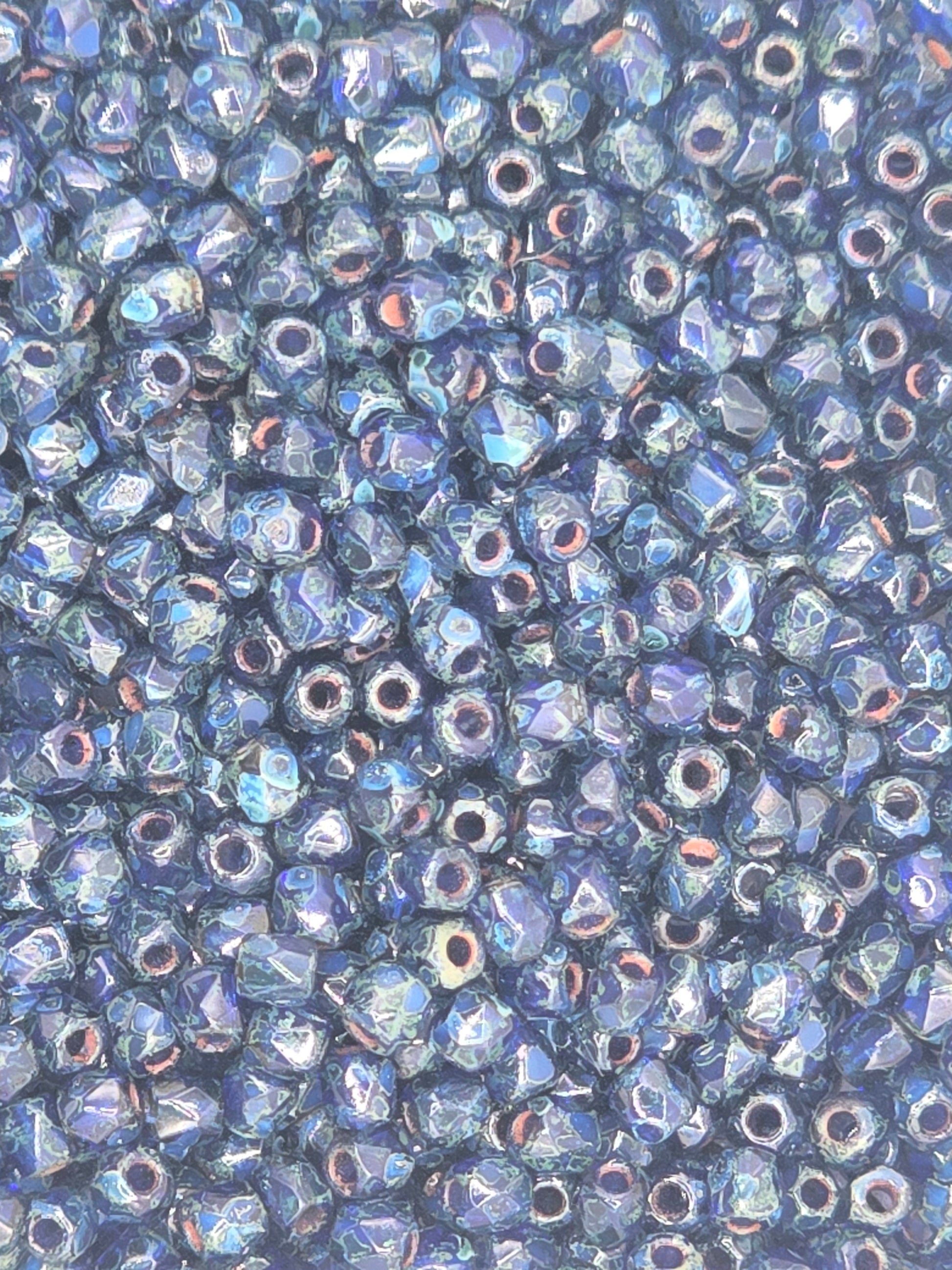 True 2 - 2mm Fire Polished Faceted Rounds - Cobalt Travertine - 100 pcs