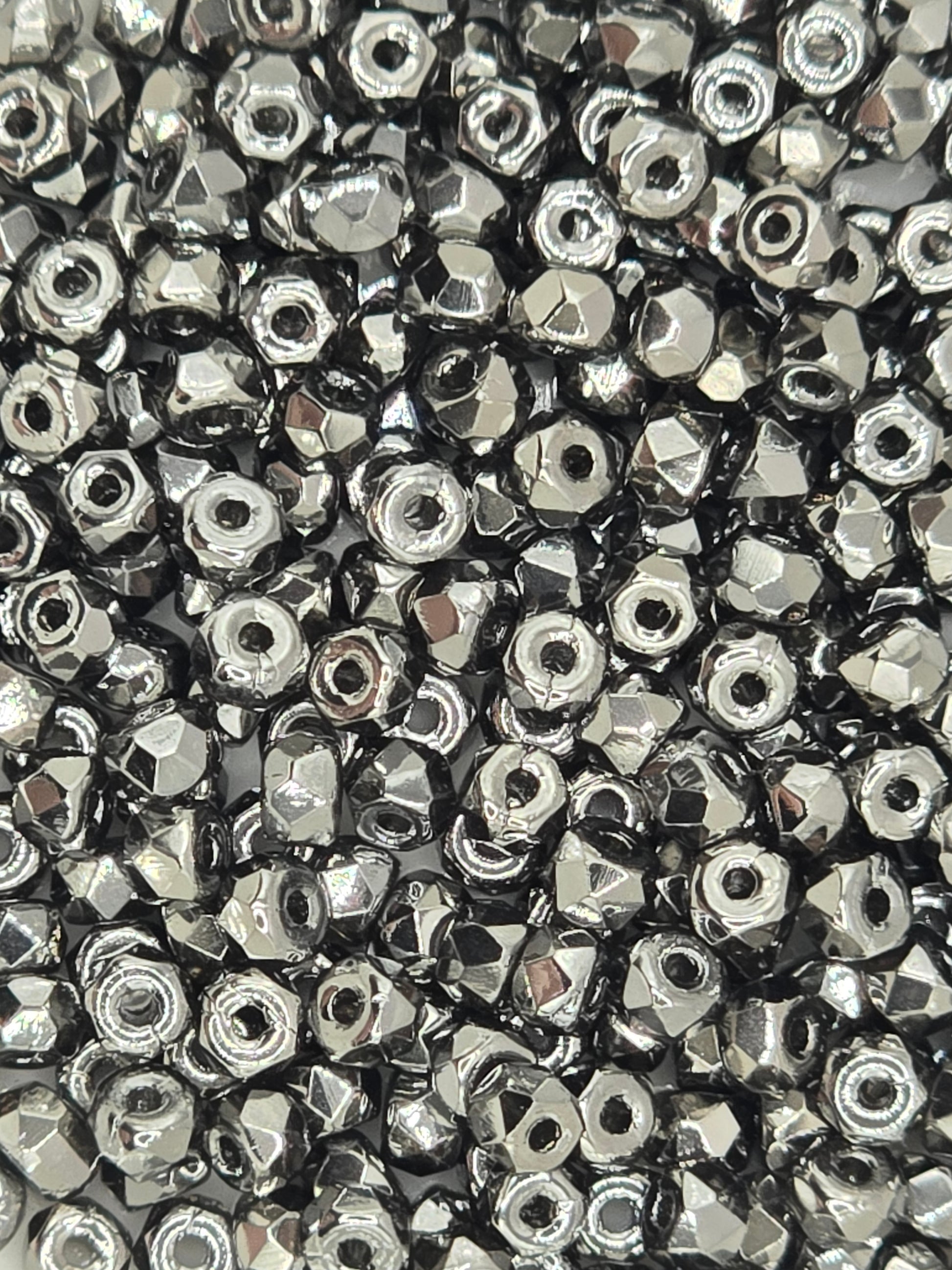 True 2 - 2x3mm Fire Polished Faceted Micro Spacers - Chrome - 100 pcs