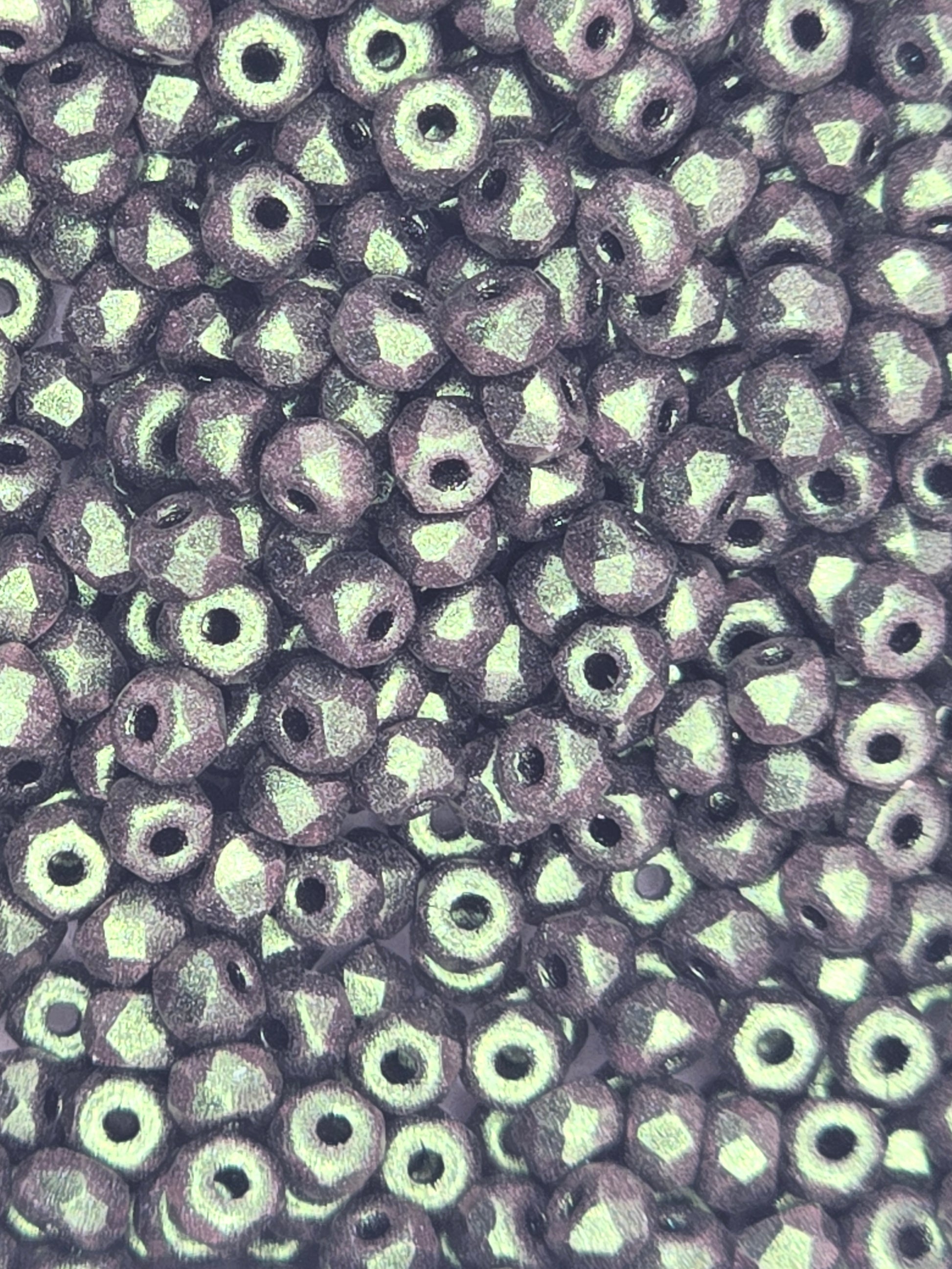 True 2 - 2x3mm Fire Polished Faceted Micro Spacers - Polychrome Sage & Citrus - 100 pcs